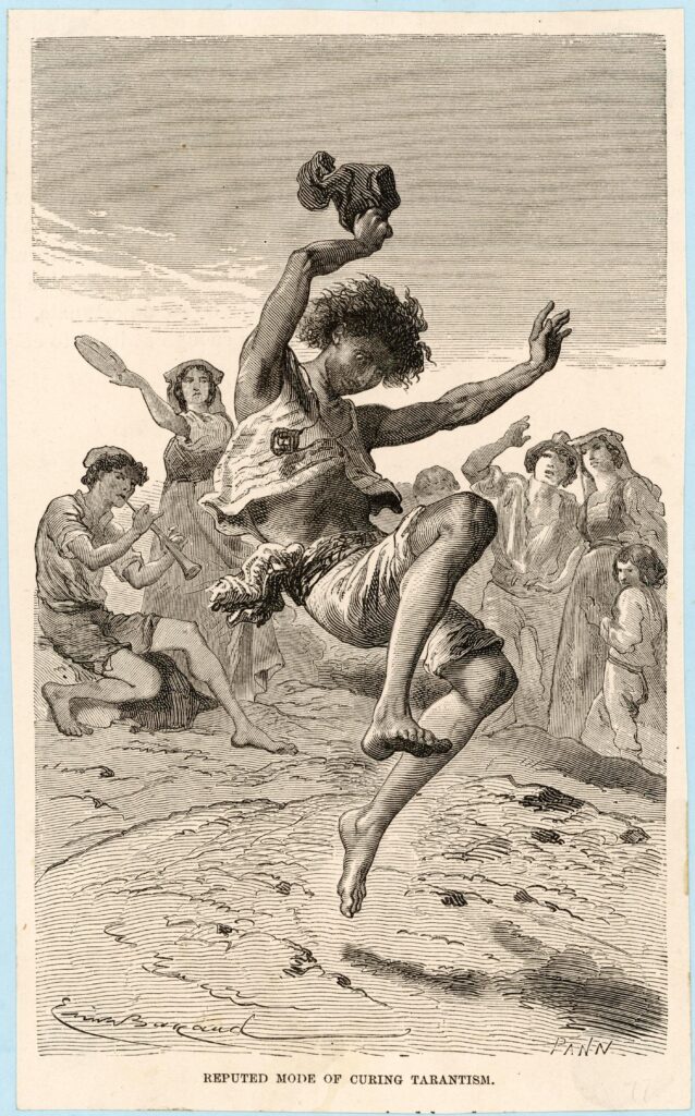 During the 15th to 17th centuries, musicians played different tempos until they found the rhythm that matched the afflicted person’s movements. Once the right beat was discovered, the victim would dance wildly until exhaustion—supposedly curing them of the spider’s effects.
